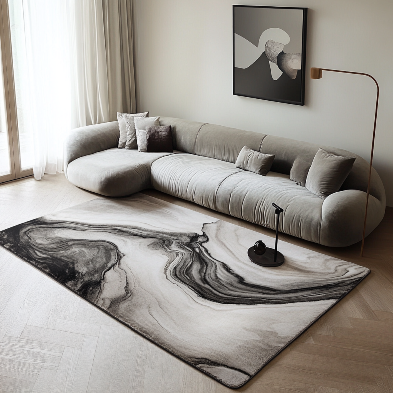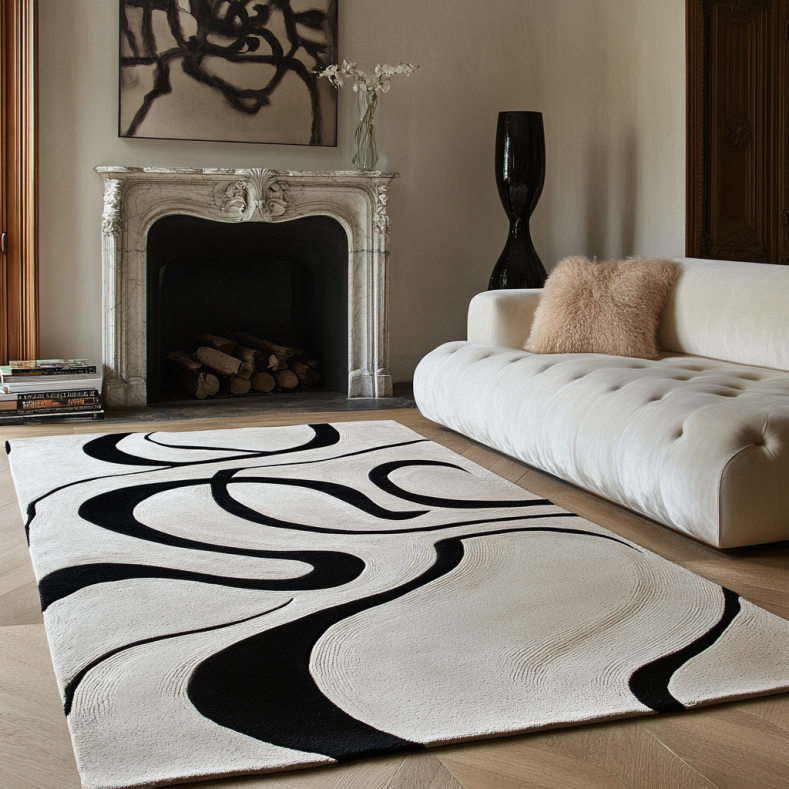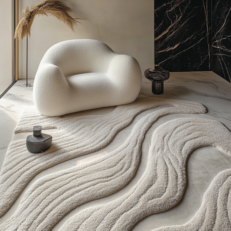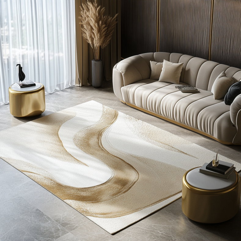 Kueth utilizes premium natural and synthetic fibers like wool, cotton, jute and polypropylene to construct their rugs. They employ skilled techniques like hand-tufting and carving to achieve luxury high-end details. Kueth rugs are made to last, not just temporarily decorate.